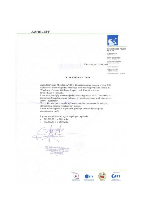 Od 2002 roku Zakład wprowadził i rozwinął wykonawstwo w zakresie renowacji sieci wod-kan w technologiach bezrozkopowych ścisłego pasowania Swagelining, kruszenia starych rurociągów Crakingu oraz przeciągania nowych rur metodą Reliningu.